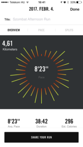 Az első 5 percben csak bemelegítettem egy kis sétával. Utána kezdtem a futás. Az első fél perc után megijedtem. Hát ez szörnyű. Egyből bevillant az agyamba, hogy nemsokára lesz egy futás. 4km. Nem fogom tudni megcsinálni. Aztán ránéztem az órámra. Még csak egy perce futok? Hát ez nudli. Még magam előtt is szégyelltem ezt a teljesítményt.